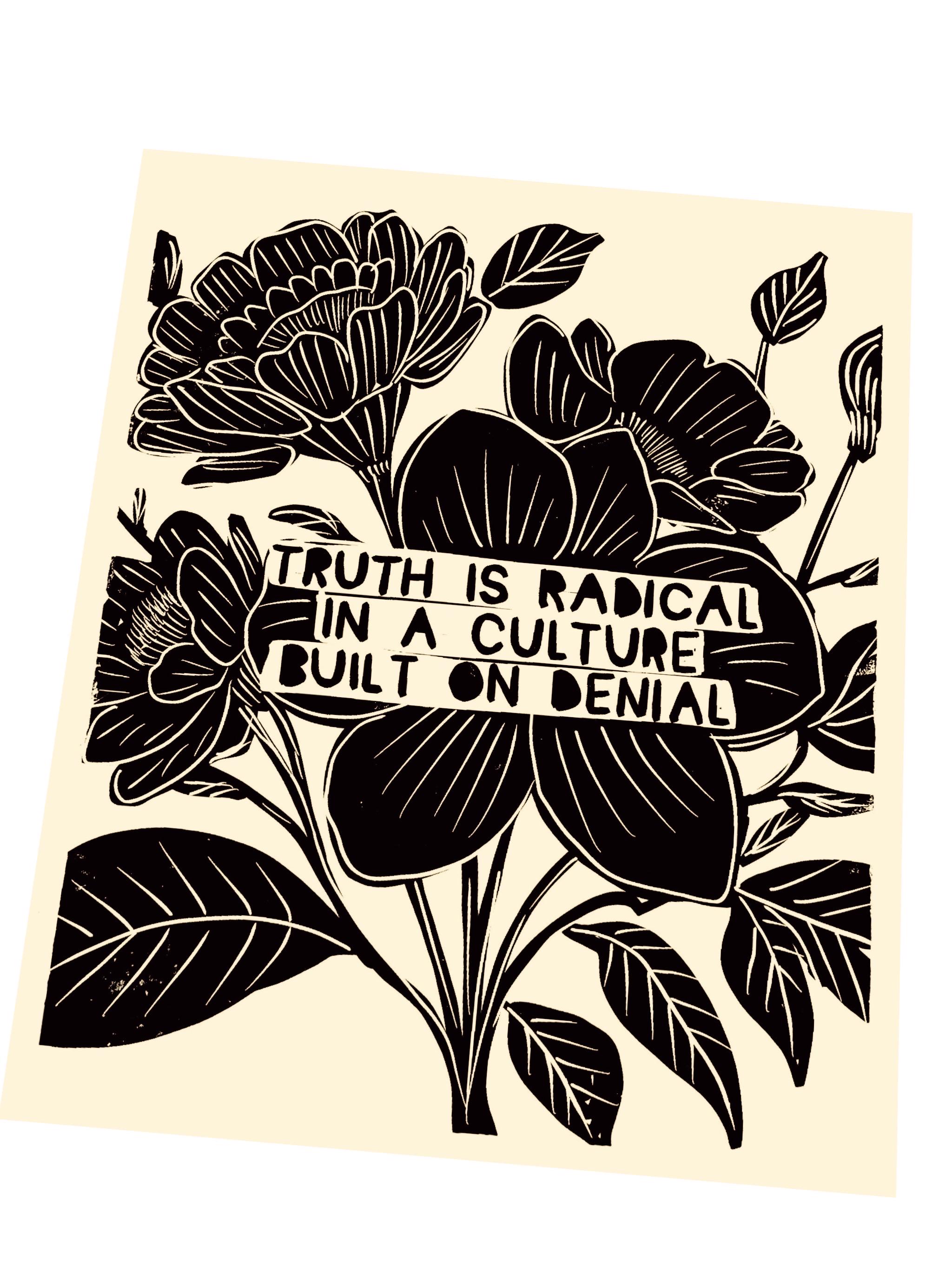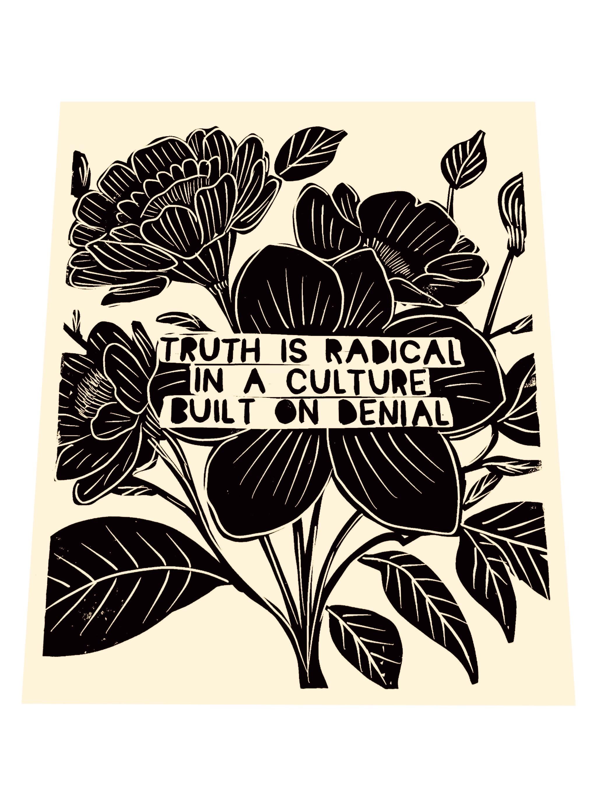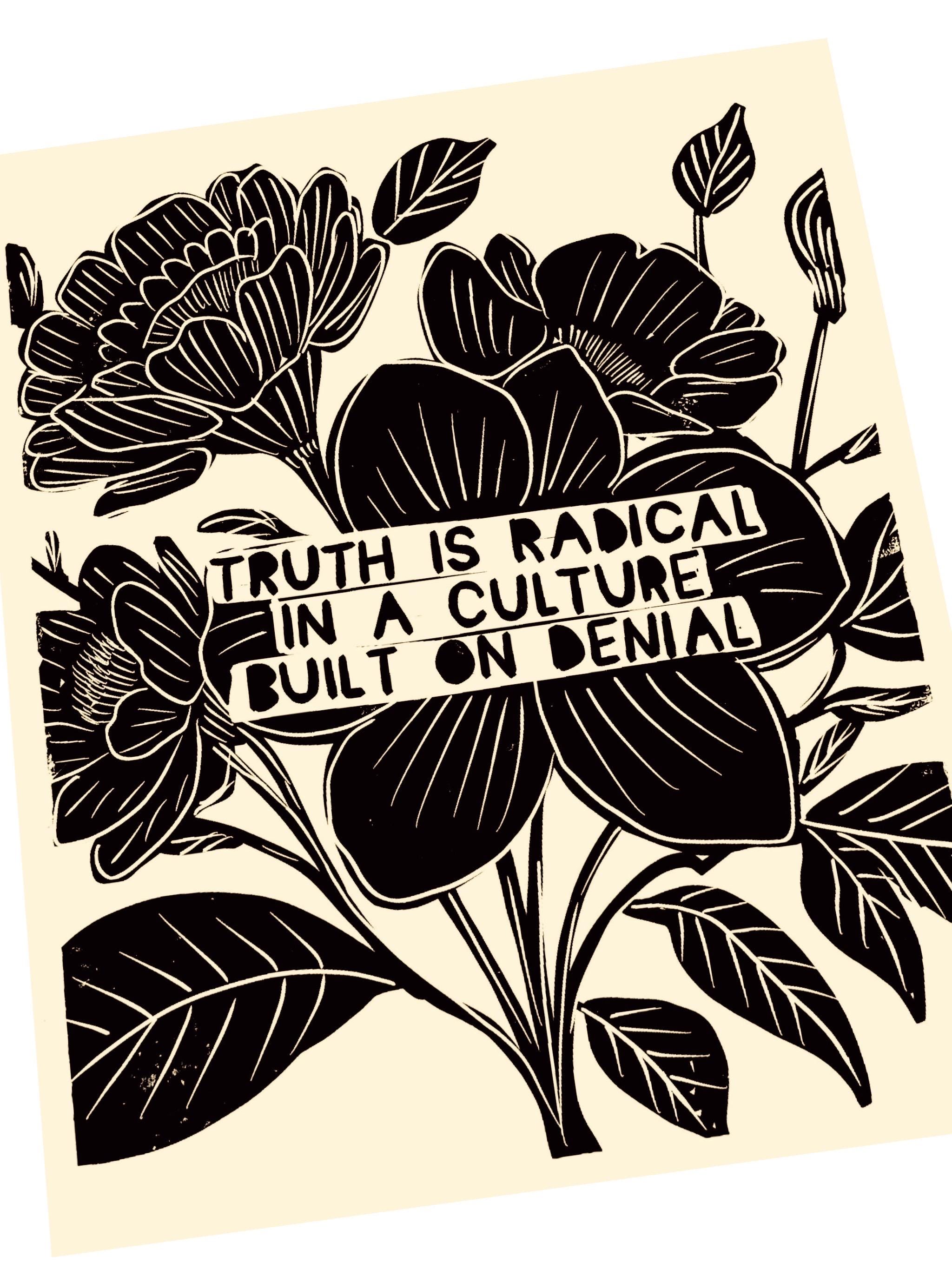 Truth is radical, radical empathy , be kind, Lino style, block style print, hands, activism, heart hugging , social justice, BLM, poster