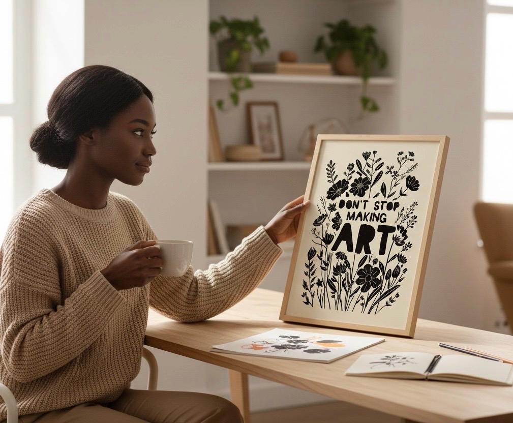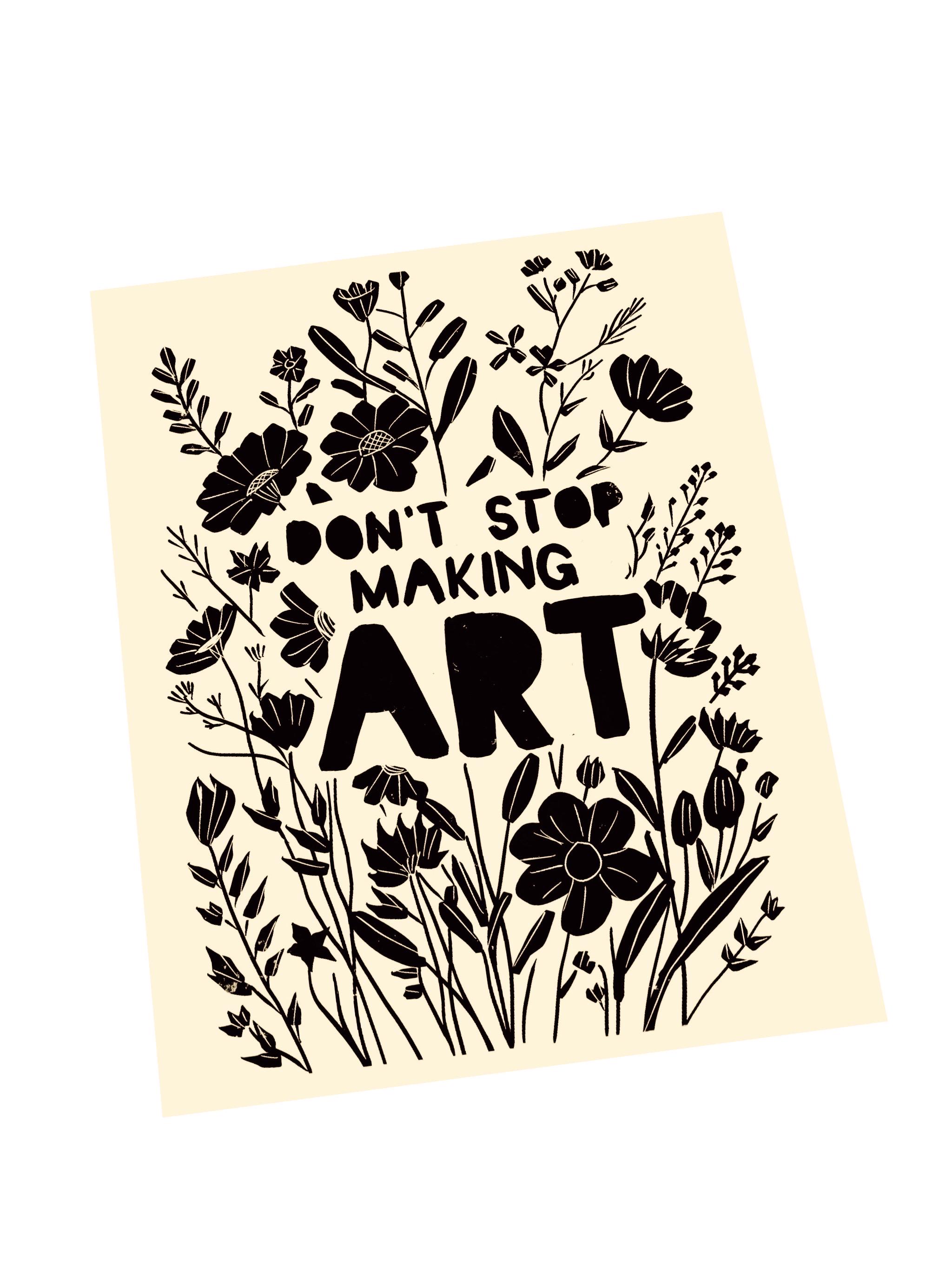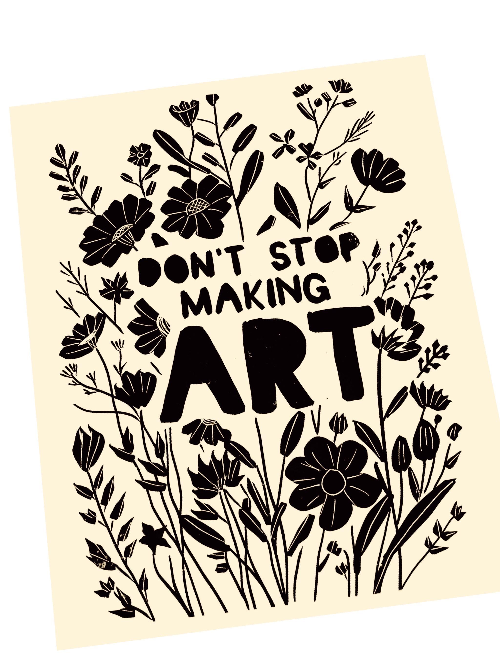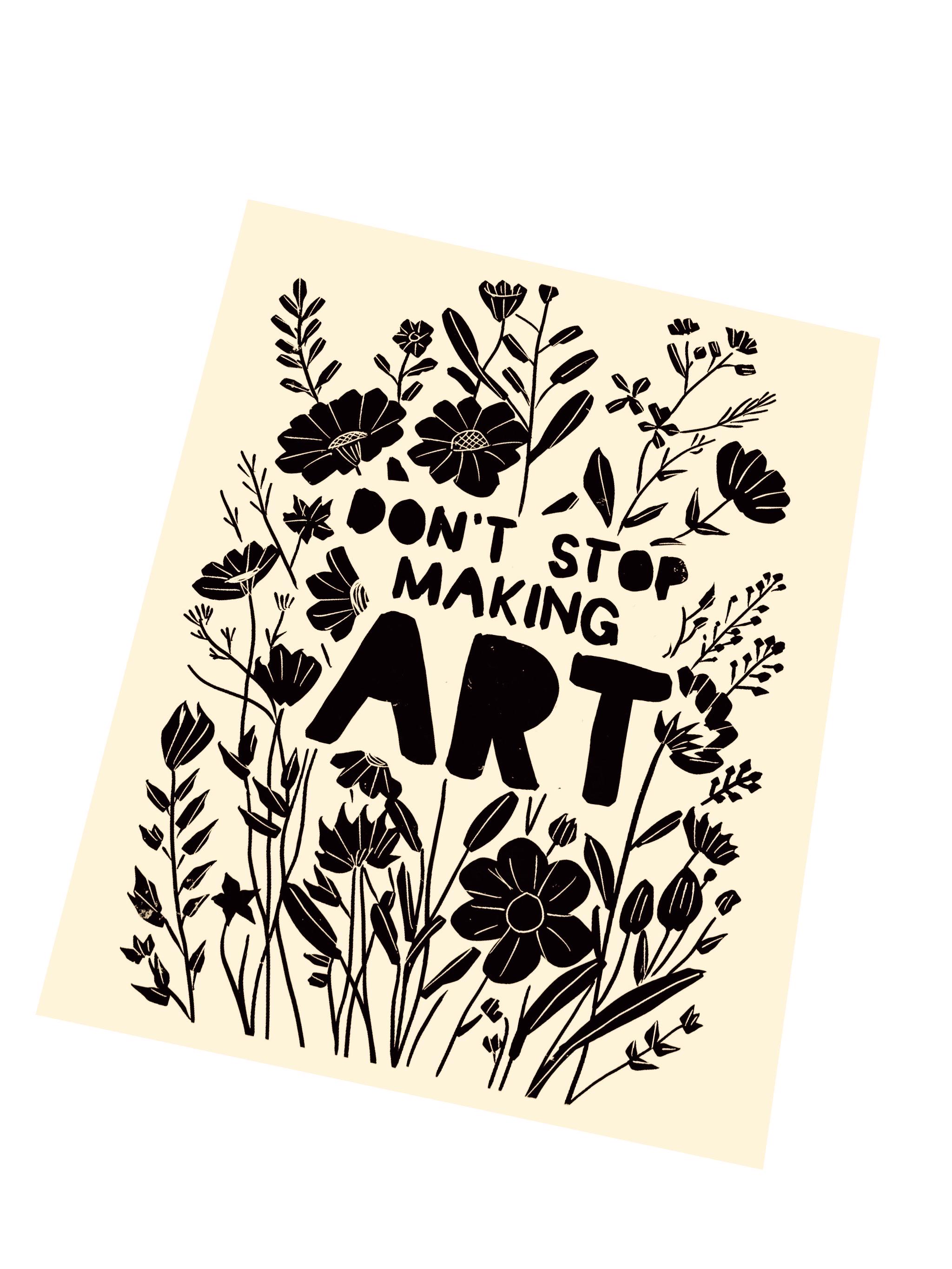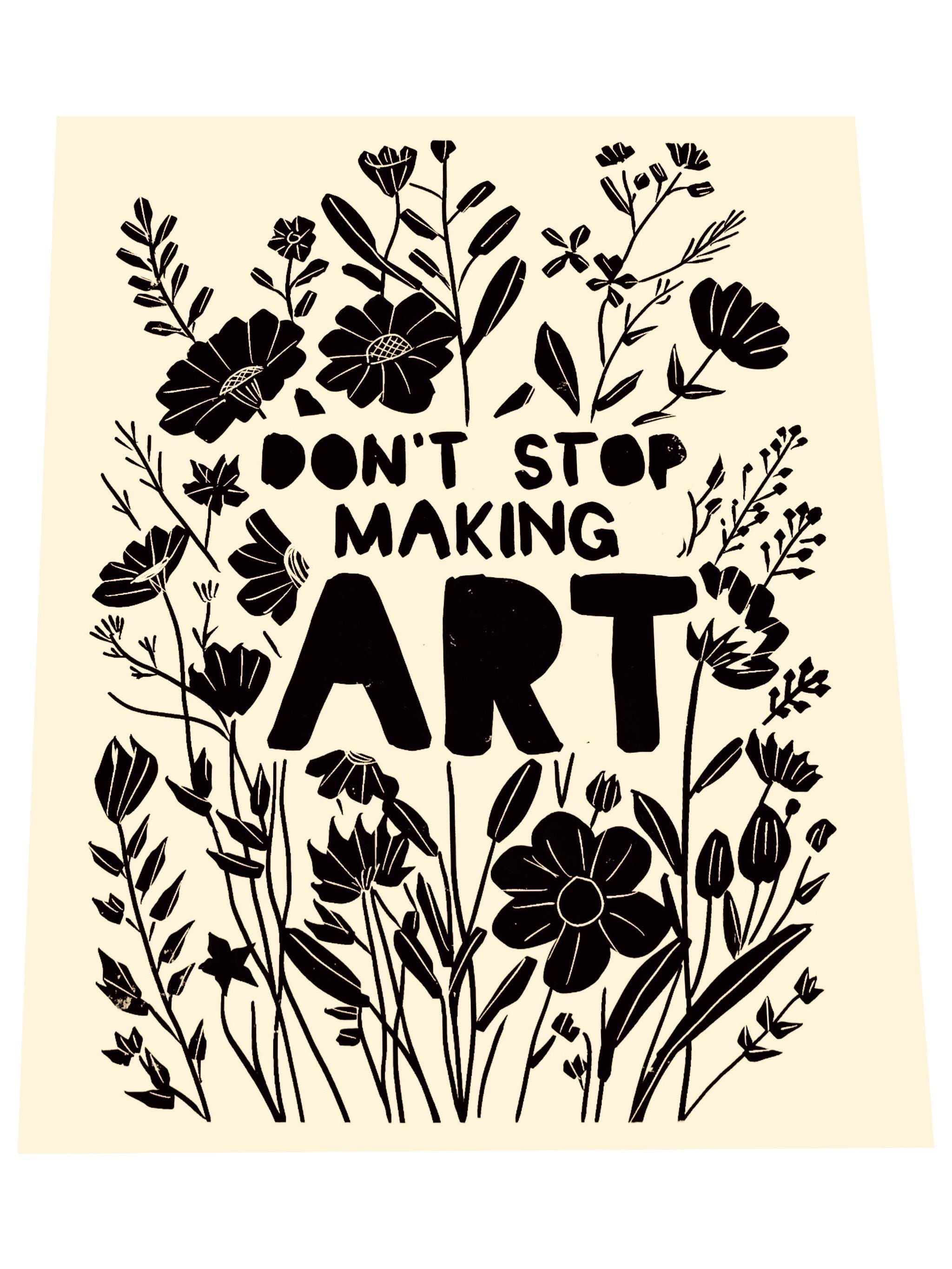 Don't stop making artl, Creativity takes courage. Lino style illusration, art activism. block style print, together, kids art print poster