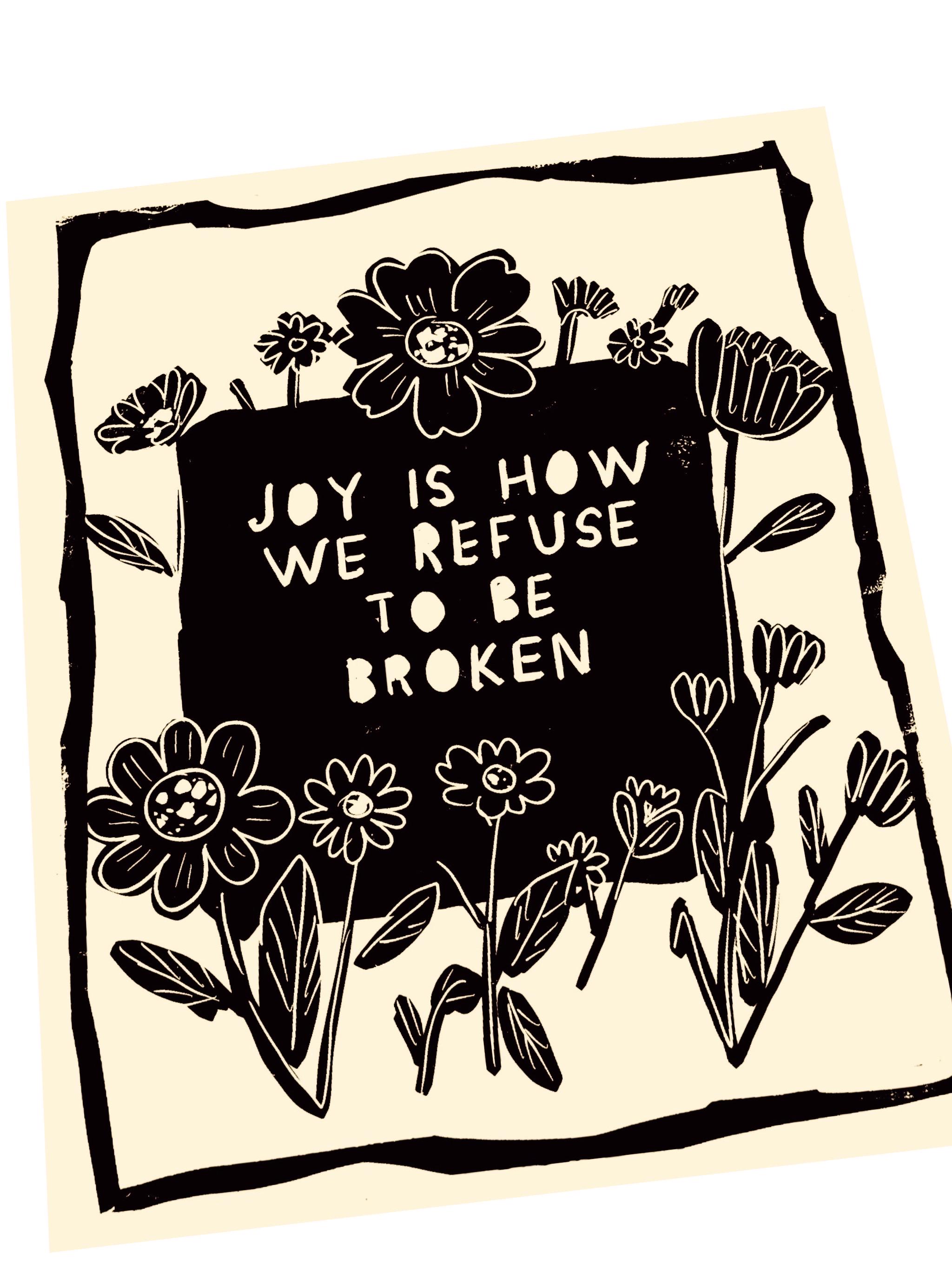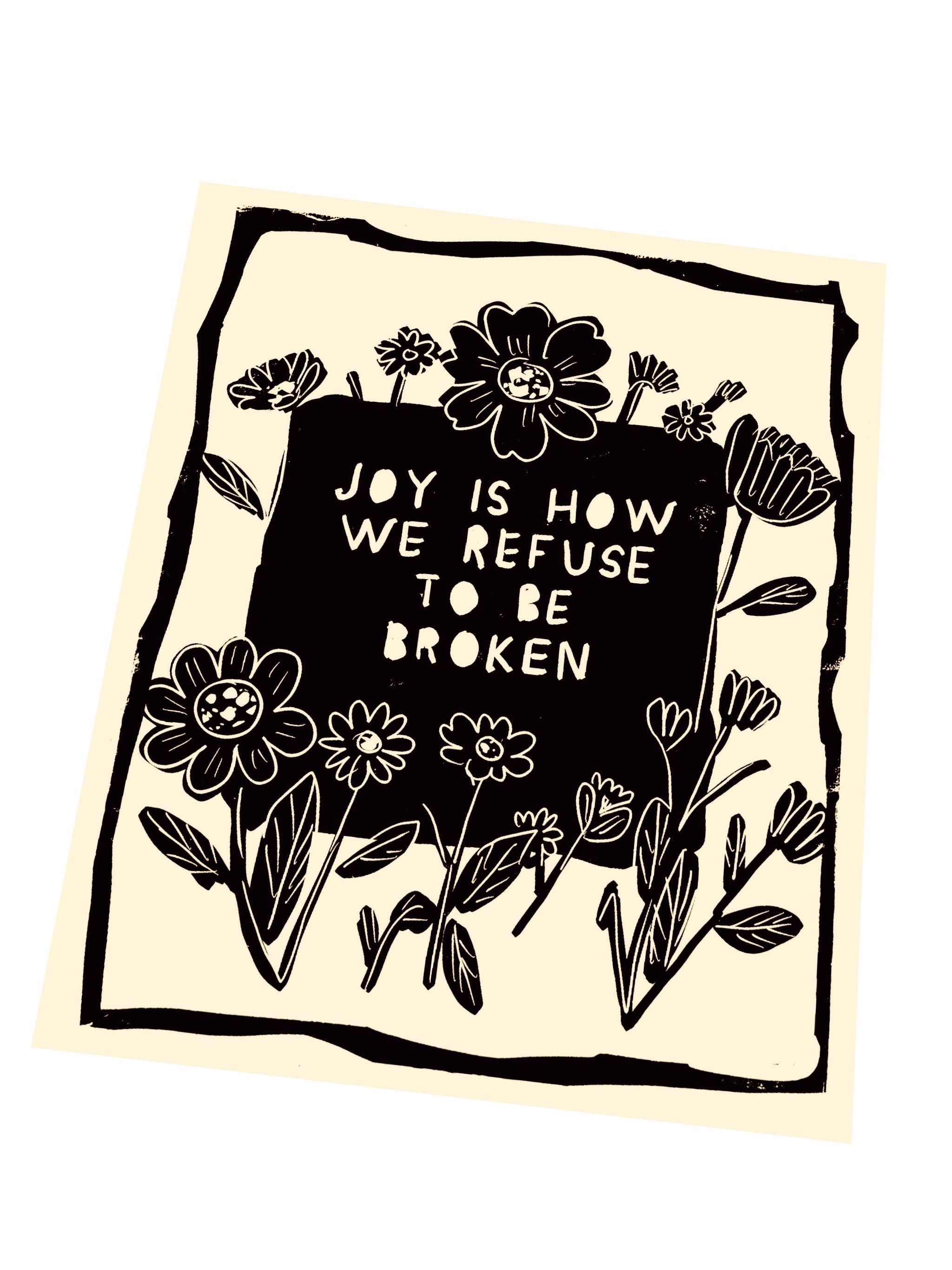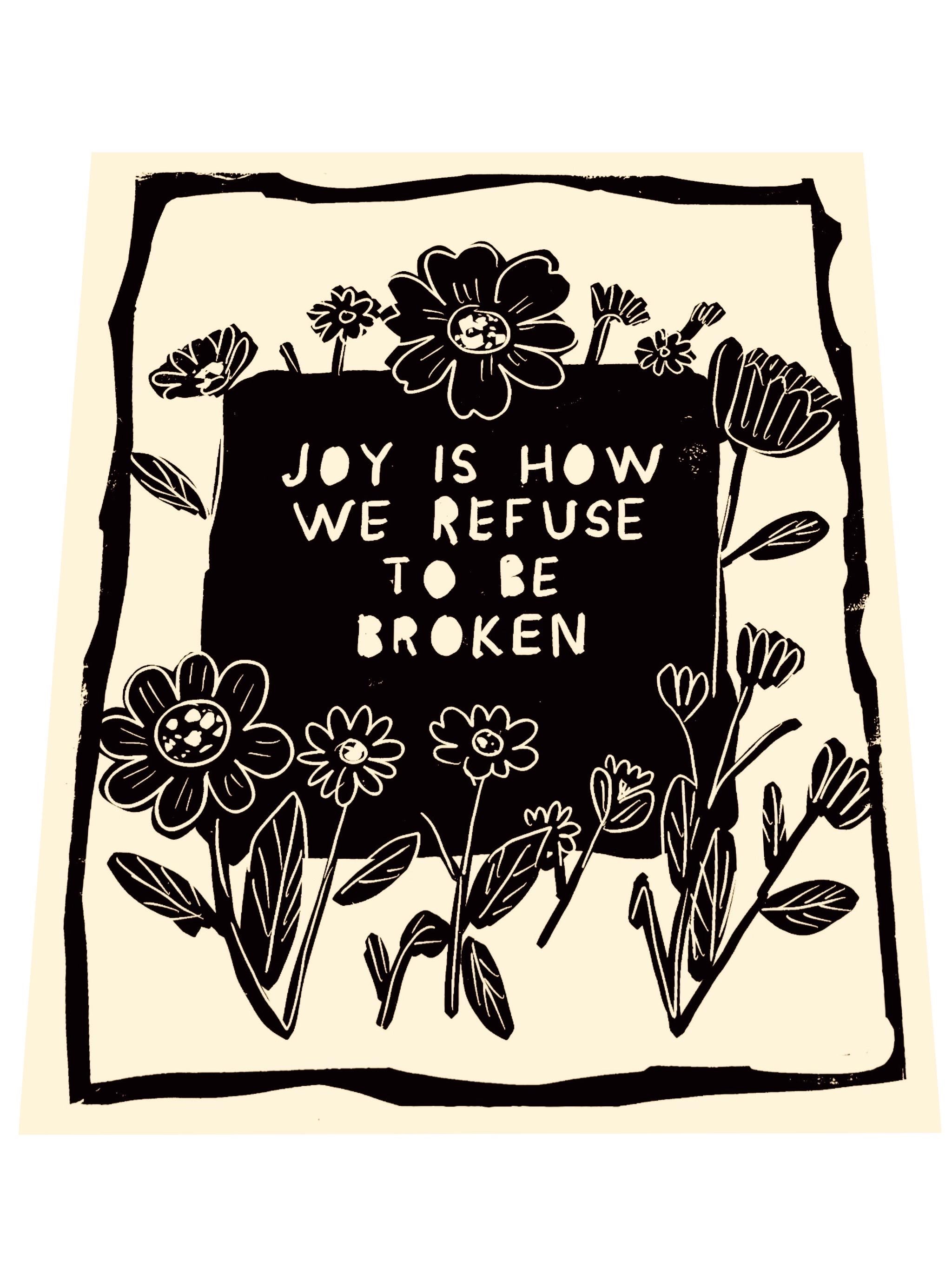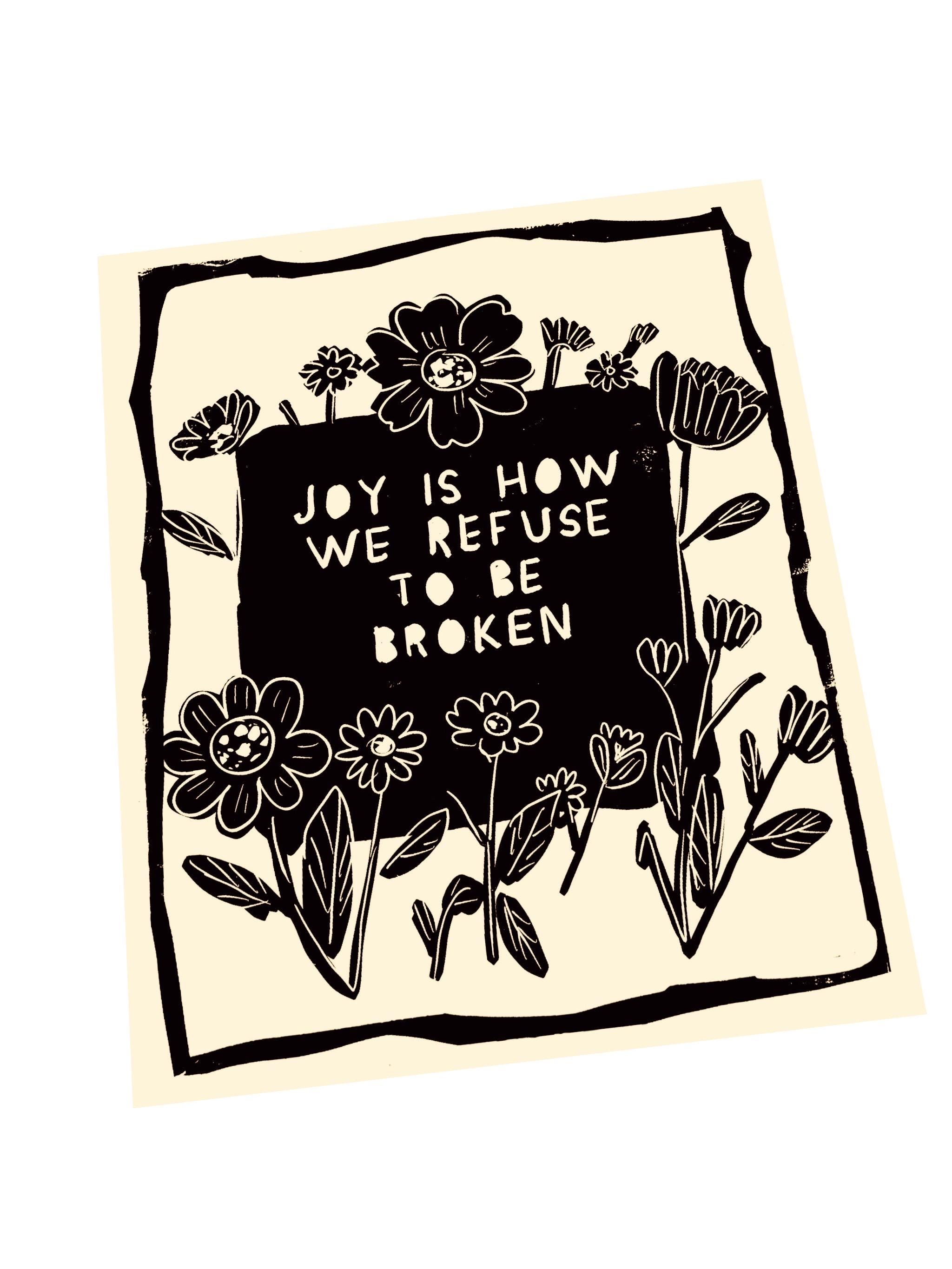 Joy is how we refuse to be broken, Your Joy matters, floral lino, uplifting block style print, wildflowers, Joy is a form of resistance