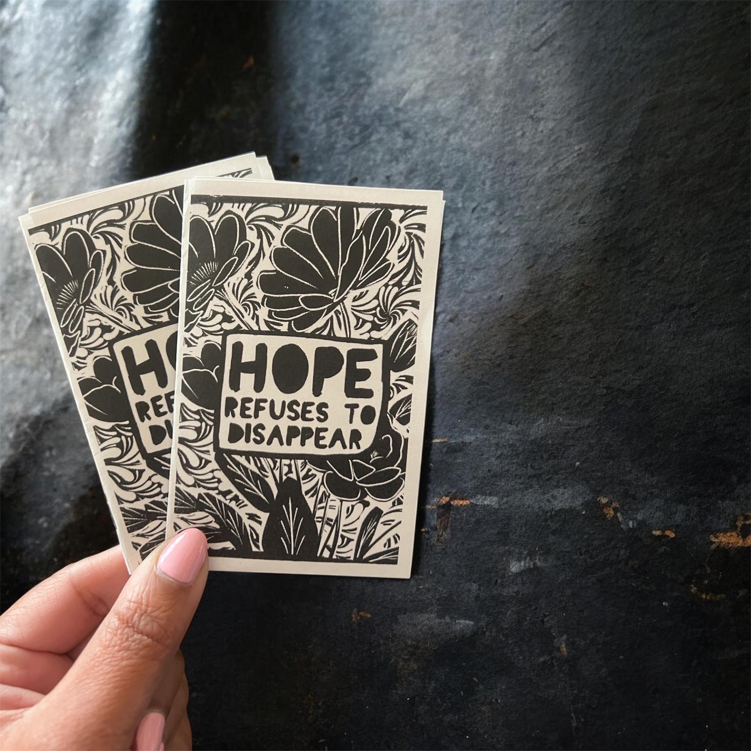 Hello and welcome! My Art Zine," Hope Refuses to Disappear" is a black-and-white art collection featuring eight of my original works. Each piece is a quiet reminder to keep going, even when hope feels fragile. This collection invites you to use your own voice, hold onto encouragement, and believe that persistence matters. A small but powerful representation of resilience, it makes a meaningful gift—for yourself or for someone else who needs a reminder not to give up.